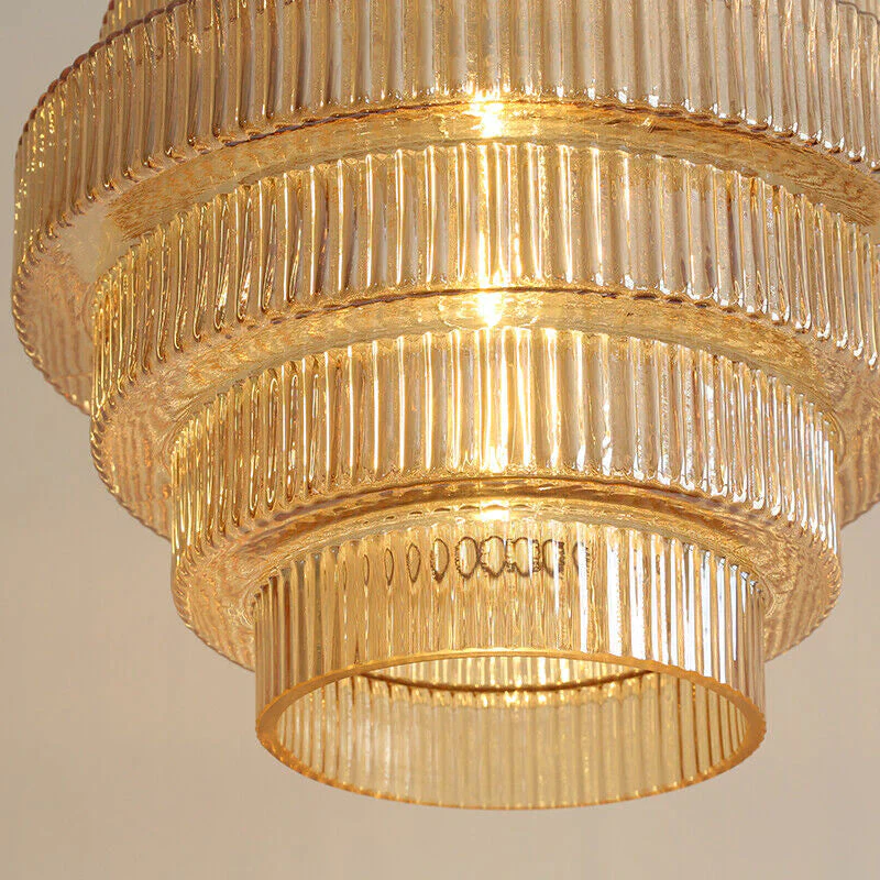Pendant Light | Amber Glass & Brushed Metal | Warm Ambient Lighting | Living Room Focal Point
